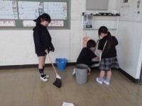 昇降口では、傘の雨を落とし1年生でも上手にたたんで、傘立てにきちんと整頓して並べていました。