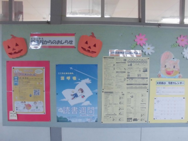 学校司書さんが図書室の掲示板をととのえたり、おすすめの本をそろえたりと、南っ子のみなさんが読書を楽しめる工夫を凝らしてくれています。