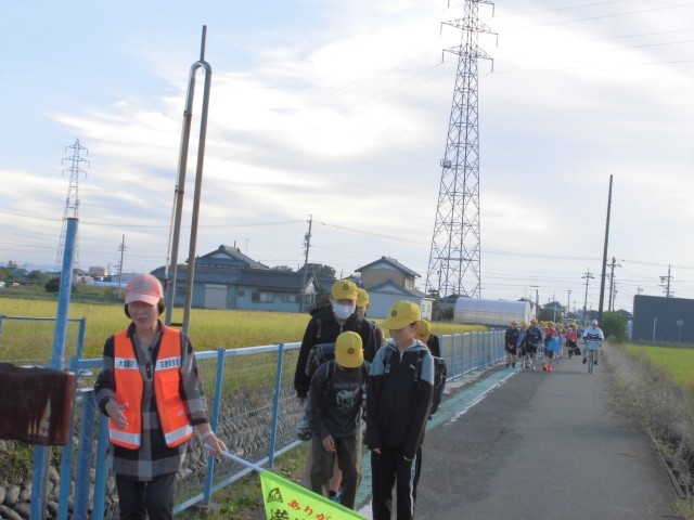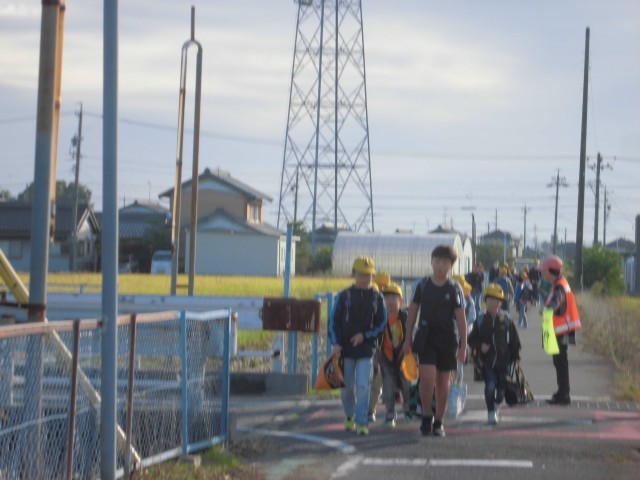 少し涼しい朝の登校。元気のよい「おはようございます」のあいさつがうれしいです。