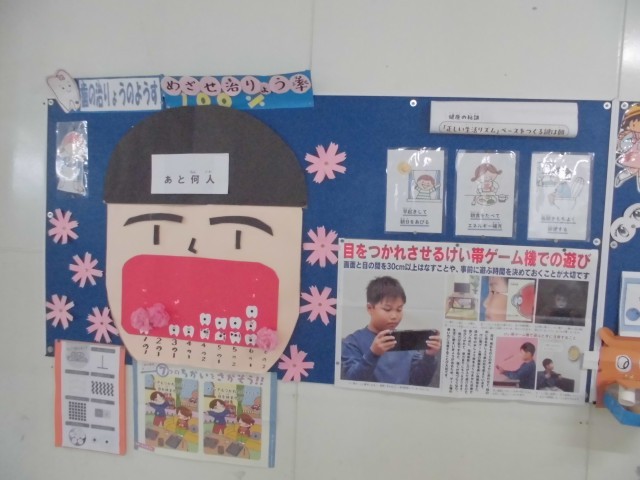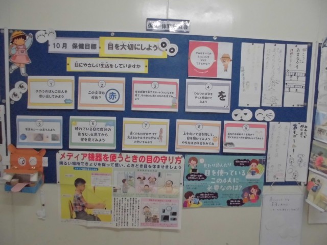 今月の保健目標は「目を大切にしよう」です。自分自身の生活を振り返ってみましょうね。
