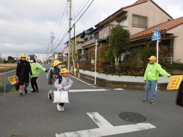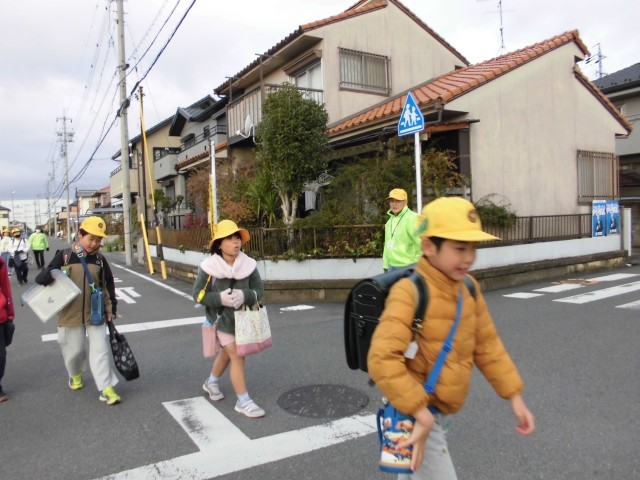 見守り隊の方は、寒い中、みなさんの安全に気を配ってくださっています。