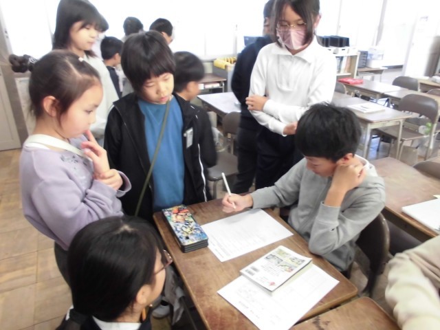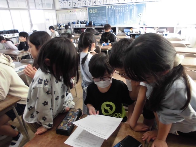 低学年の子にやさしく教えてあげている高学年の姿もちらほら。とてもよい時間です。