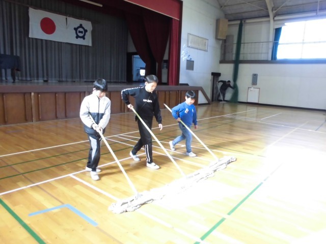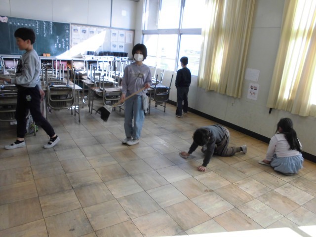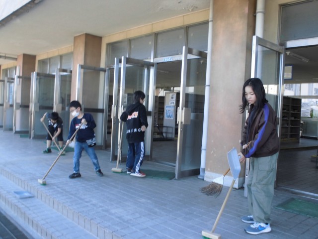高学年の班長さんを中心として、みんなよく協力しながら、黙々と担当場所を掃除していました。