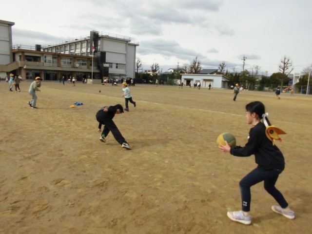 空気は冷たく寒い日ですが、休み時間には大勢の子が運動場に飛び出し、元気いっぱい遊んでいます。