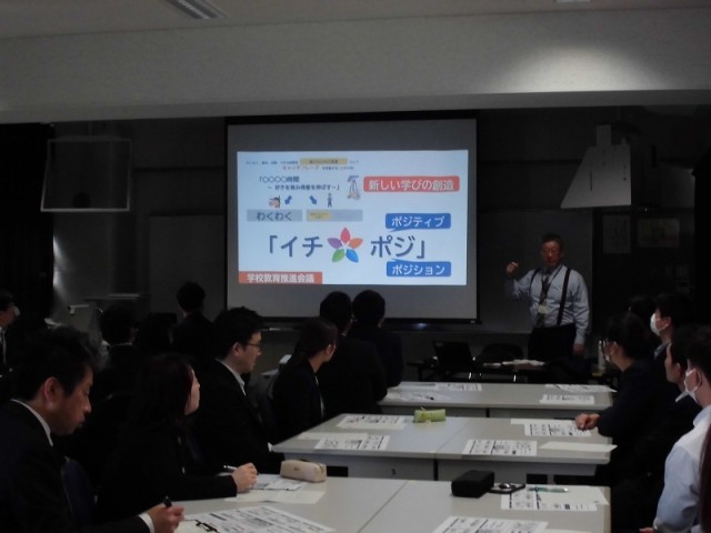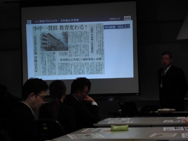 教育長をお迎えして、シン学校プロジェクトとして、大和南小中学校がどのように変わっていくのか、中学校の先生とともに学びました。