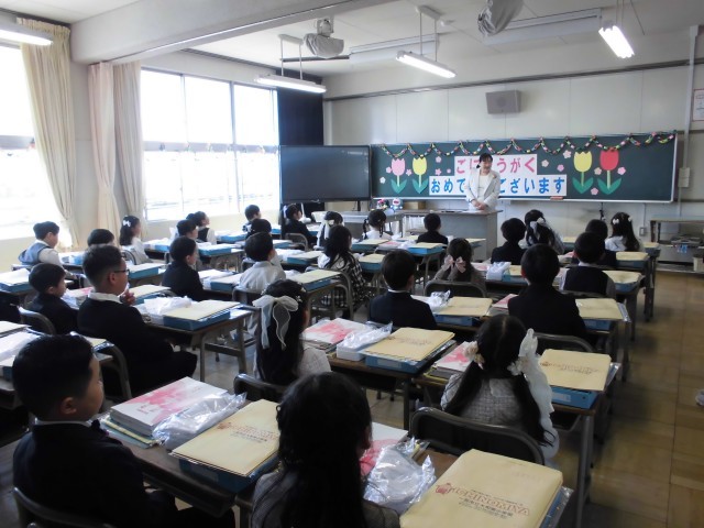 お天気にも恵まれ、色とりどりの花々に迎えられて、かわいらしい37名の新一年生が入学しました。校長先生や担任の先生のお話を真剣に聞くことができていました。わくわくドキドキの一日でしたね。明日からは2年生から6年生までのお兄さんお姉さんも一緒です。楽しい学校生活にしていきましょう。新6年生は、昨日の入学式準備から今日の式、片づけまで、頼もしい最上級生の姿を見せてくれました。明日からもよろしくお願いしますね。