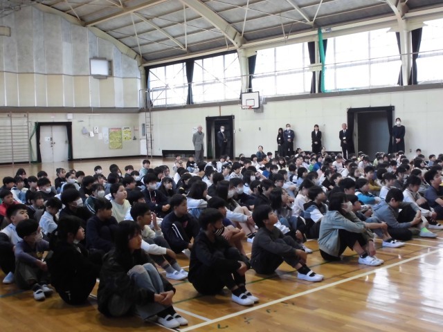 教育長をお迎えして、シン学校プロジェクトとして、大和南小中学校がどのように変わっていくのか、中学校の先生とともに学びました。