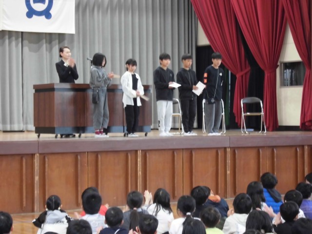 今日は、各学年の代表児童のみなさんが「3学期にがんばったこと」の作文発表をしました。