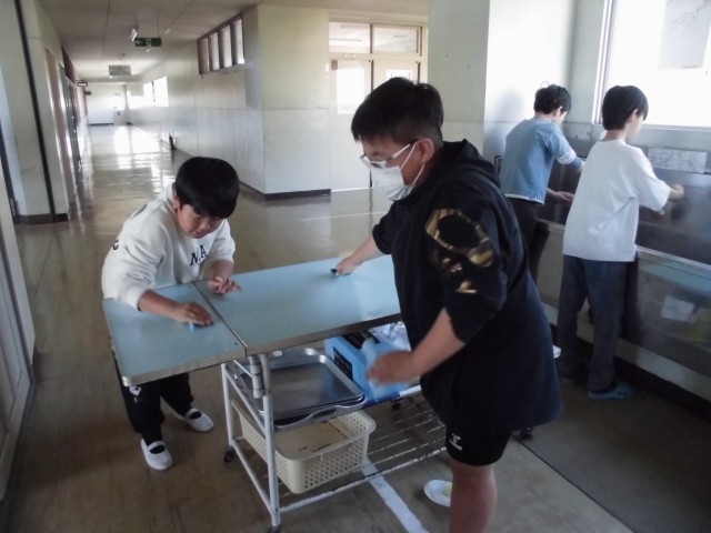 プール掃除、掃除道具の取り換え、配膳台のクリーニング、掲示物の作成・仕分けなど、学校のみんなのために立派に仕事をしていました。