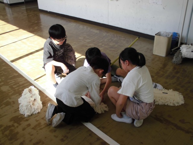 高学年の子が、低学年の子に優しく教えたり、手伝ったりしながら掃除をしていました。どの子も、黙々と一生懸命に取り組んでいて、とてもすてきでした。