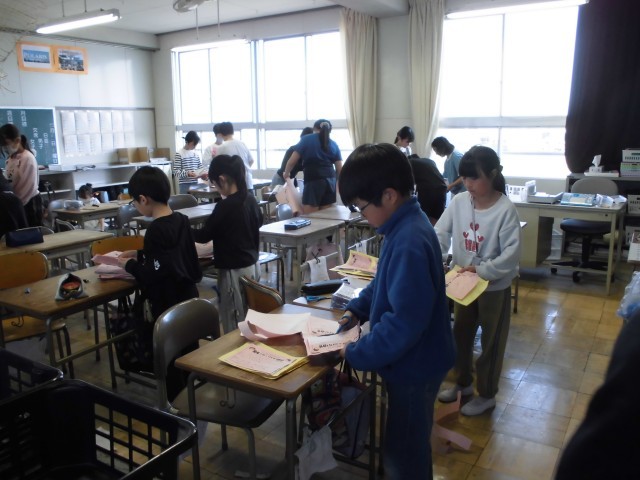 修了式の後、それぞれの教室で担任より「あゆみ」をいただいています。