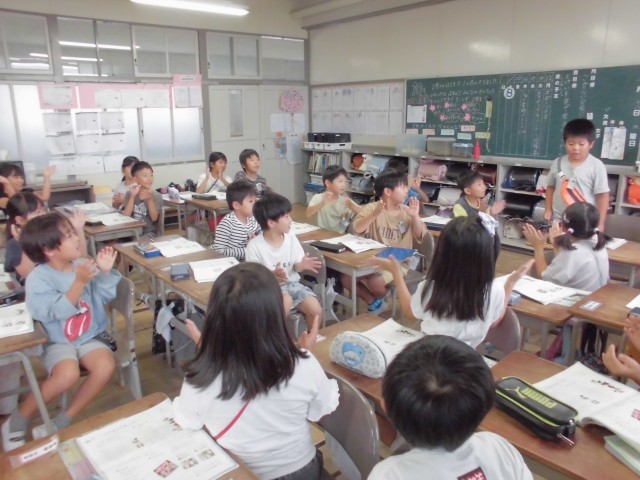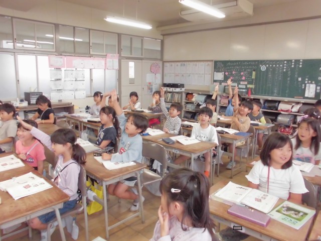 どんぐり読書週間の今日は、4年生のお兄さんお姉さんが読み聞かせをしてくれました。2年生はみんな熱心に聞き入っていました。4年生のみんな、ありがとう。本が大好きなYさんは、ちゃんと黒板係の仕事をしてから図書館へ出かけます。司書さんが大好きなIさんは、一緒にお手伝いをしていました。