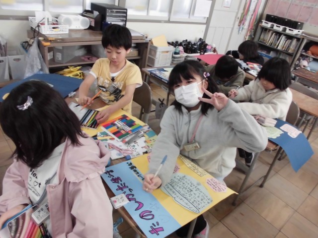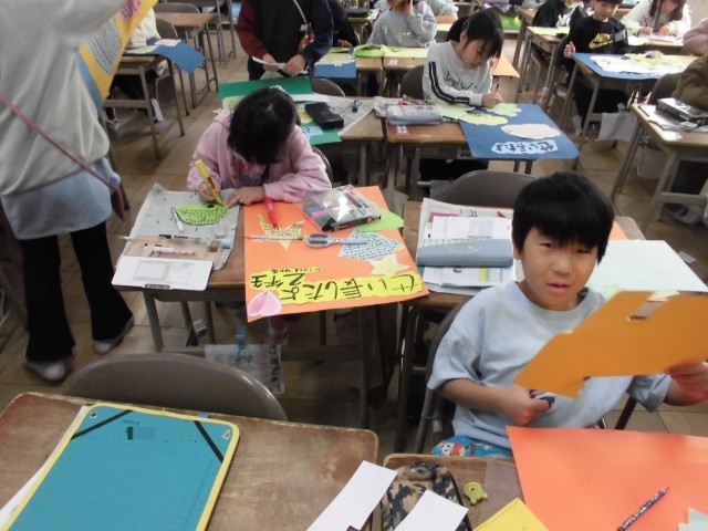 グループで動く仕組みのあるおもちゃを作っりました。完成したら、1年生を招待して遊んでもらおうと張り切っています。どんなコーナーができるか楽しみですね。