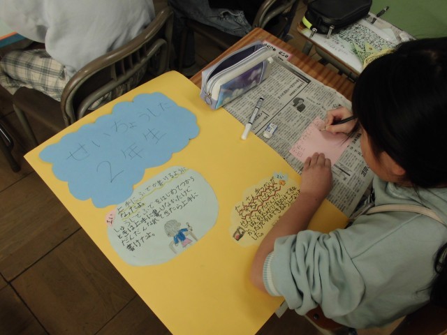 生活科の学習の様子です。これまでを振り返り、できるようになったことやがんばったことを新聞にまとめています。たくさんありすぎて何について書こうか迷ってしまいますね。