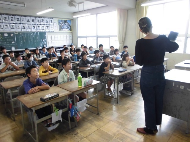 3年生の外国語活動は、今、「How many?」という単元の学習をしています。今日は英語でじゃんけんをしました。勝ったら〇、あいこなら△、負けたら×をテキストに記入し、何個〇を得ることができたかを競い合いました。