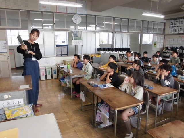 今日は、朝、PTA読み聞かせがありました。3年生は「さかさま」という本を読んでいただきました。内容は赤い星と青い星が登場し、それぞれが自分の立場で話をするというもので、最後は戦いになってしまうというお話でした。ちょっと難しいお話でしたが、いろいろと考えさせられるものでした。