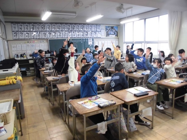 今日は、読書タイムのときPTA読み聞かせがありました。3年生が今日読んでいただいた本は「おまえ うまそうだな」です。草食恐竜の赤ちゃんが肉食恐竜をお父さんと勘違いをしたところから話が始まります。子どもだけでなく世の中のお父さんにも読んでほしいと思える本でした。