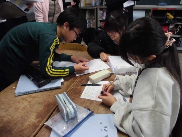 家庭科では、調理実習でごはんとみそ汁を作りました。ごはん組とみそ汁組に分かれて、朝から米を給水させたり、みそをブレンドしてオリジナルみそを作ったりと大忙しでしたが、子供たちの顔はみんな晴れやかでした。食べている最中も笑顔があふれている様子。満足いく出来だった班も課題が残る班もいましたが、将来のためになる良い学びの時間になりました。ぜひ、おうちで家族に作ってくださいね。