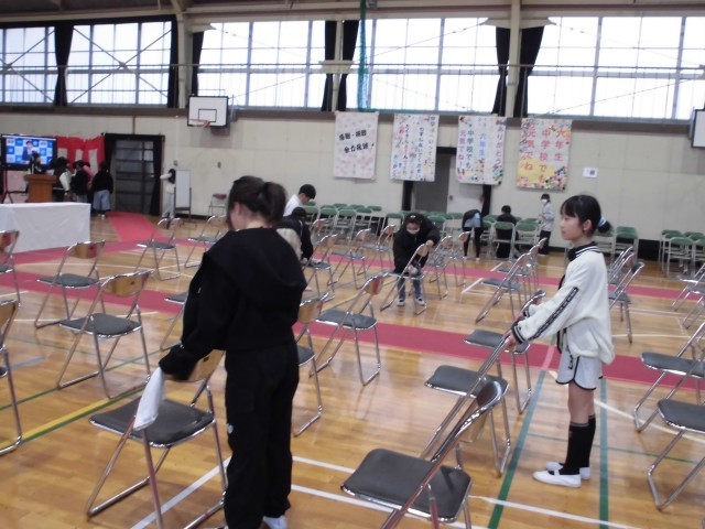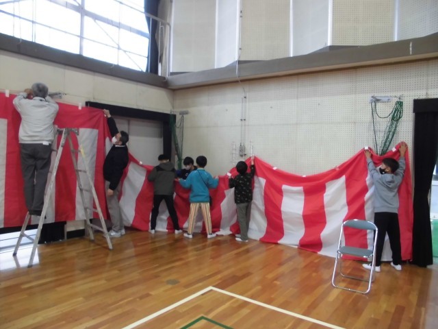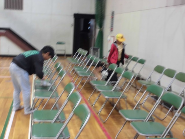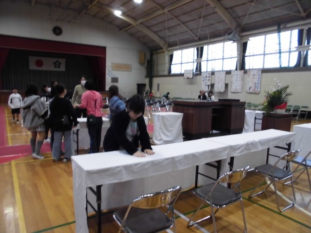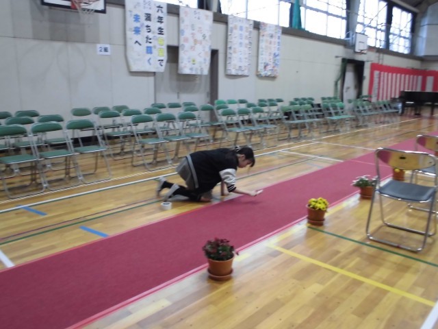今日は、5年生が残って明日の卒業式のための式場準備を行いました。