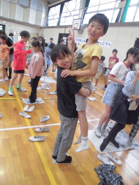 新聞島では、ジャンケンに負けてどんどん小さくなっていく島からはみ出ないよう、ペアの3年生と工夫している姿が可愛らしかったです☺