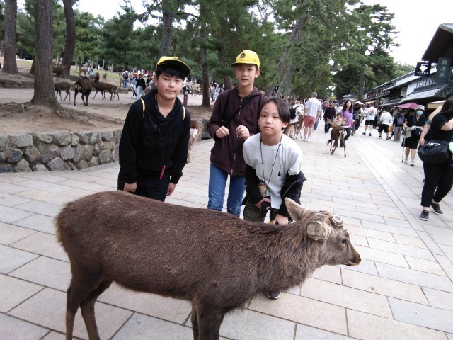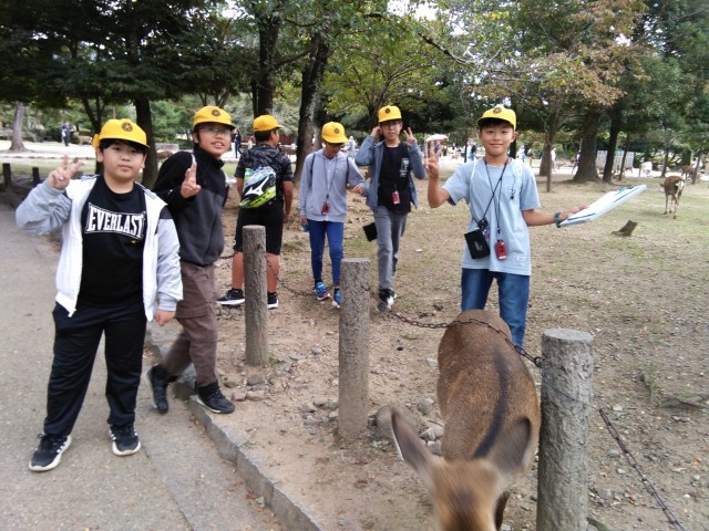 しっかり学んで、このあとは班行動。鹿を撫でに行きます。