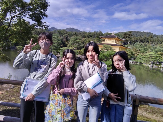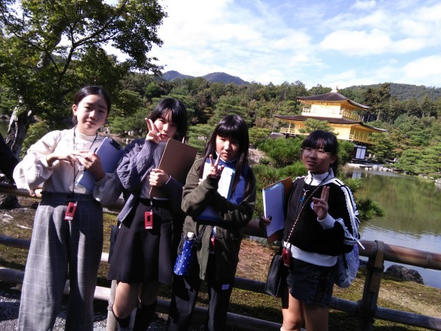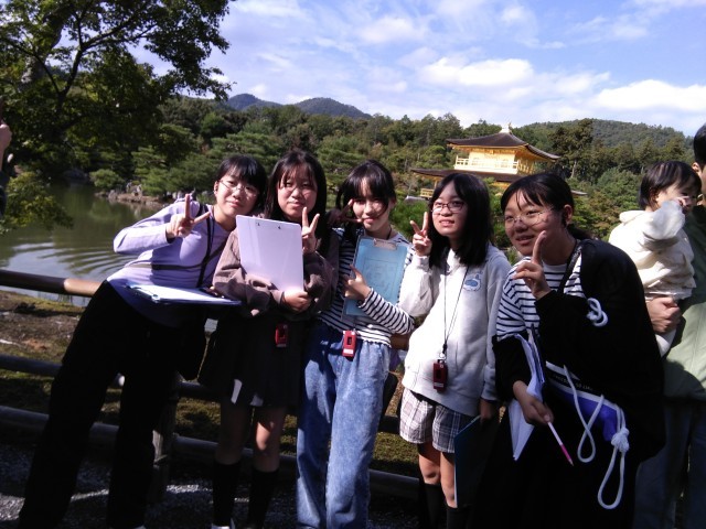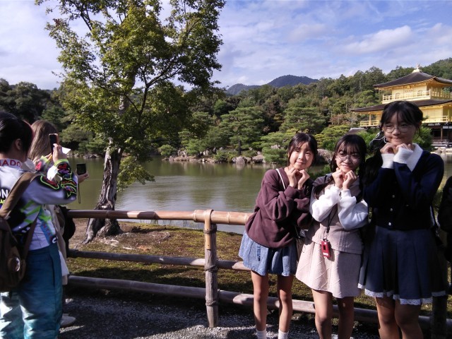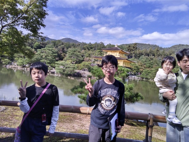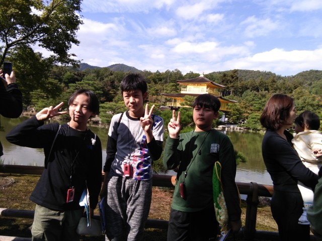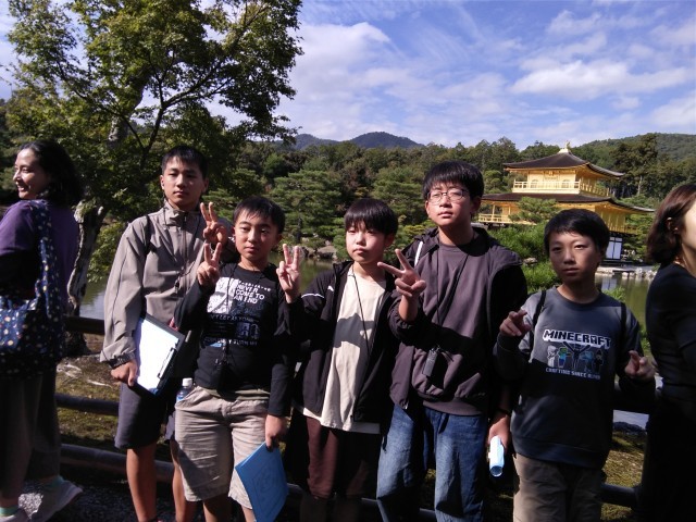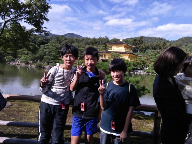 最後の見学地、金閣寺。まばゆい輝きに感動していました。