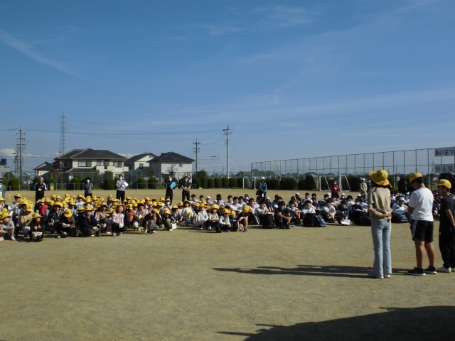 今日は、地震が発生し理科室から出火したという想定で、全員運動場にすばやく避難をする訓練をおこないました。