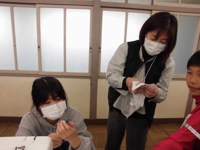 今回も学校支援ボランティアさんがみえて、おそるおそる布を裁ったりアイロンがけをしたりする児童の支援をしてくださいました。