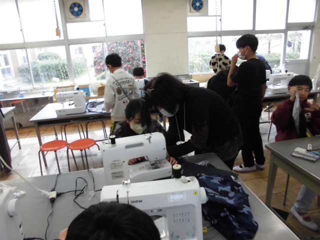 今日の5年生の家庭科も、ボランティアの皆さんに助けていただきました。