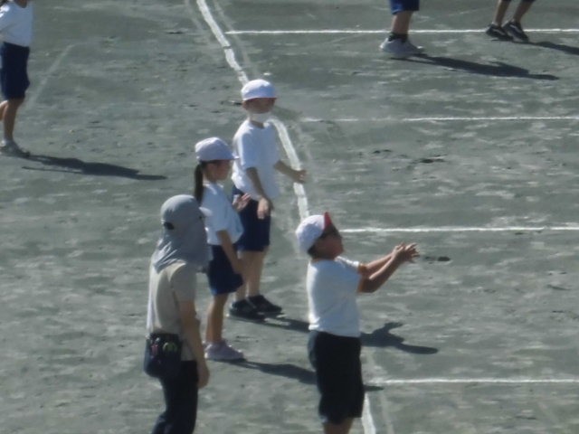 1年生は体育。この後ボールを使ってゲームをしました。