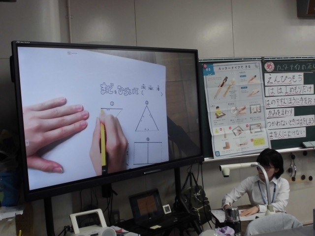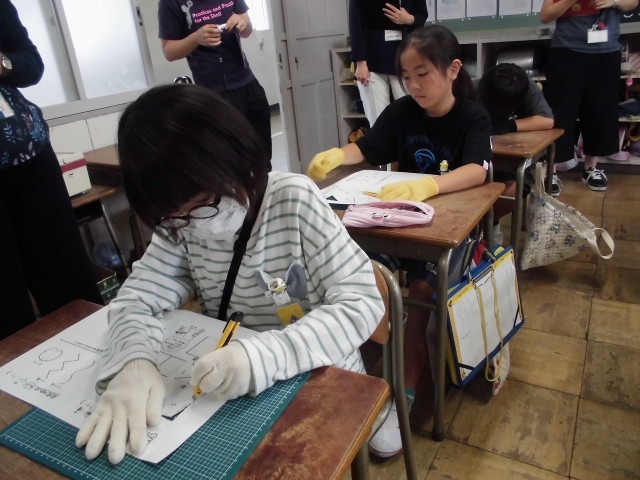 正しく安全に扱い、線に沿って切ることを学習しています。