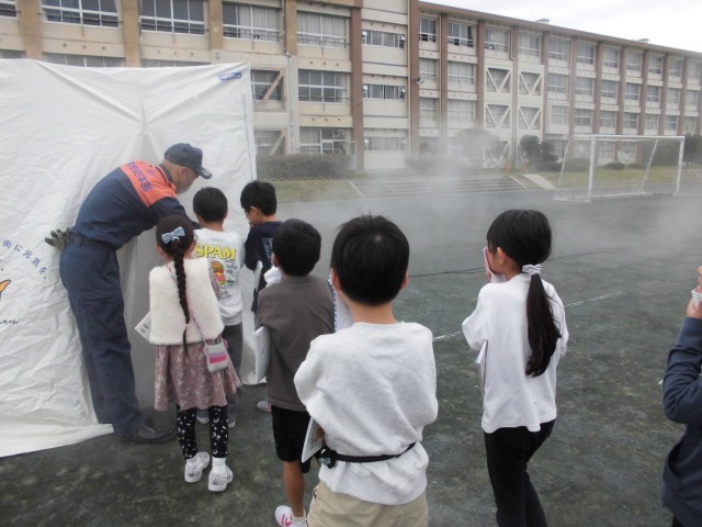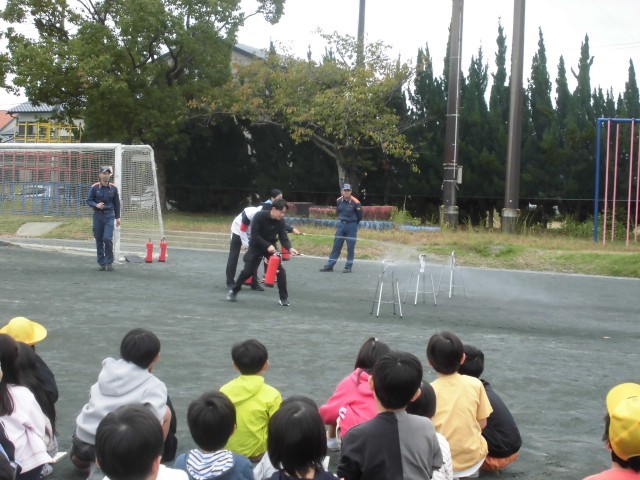 今日は2時間目に、避難訓練を行いました。消火器の使い方を学んだり、スモーク体験をしたりしました。自分の命は自分で守れるよう、どの子も真剣に参加していました。