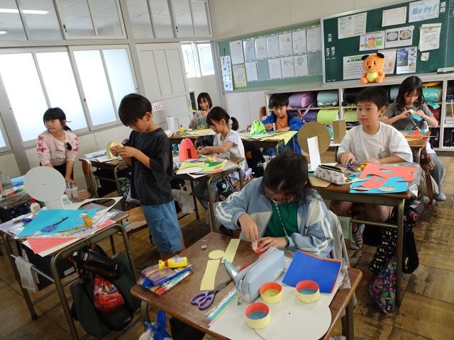 わりピンでくるくる回る仕組みを使って:図画工作【10月24日(金)3年生】