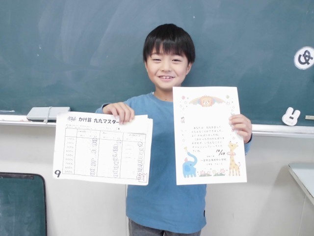 九九マスター 第1号です!がんばりましたね。みなさんも、次に続きましょう。