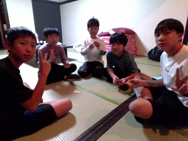 部屋の片付けも終わり、夕食の時間まで友達と楽しく過ごしています。