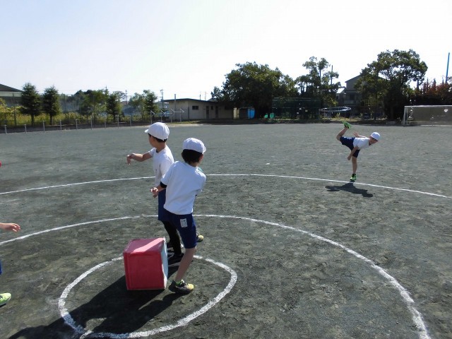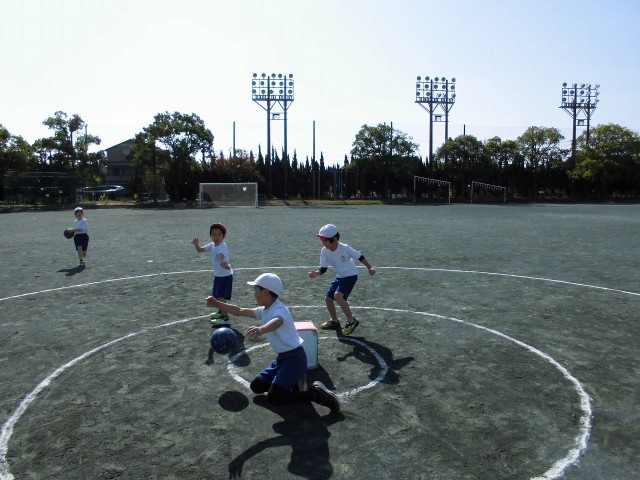 攻撃と守備に分かれてまとあてゲームを楽しんでいます。
