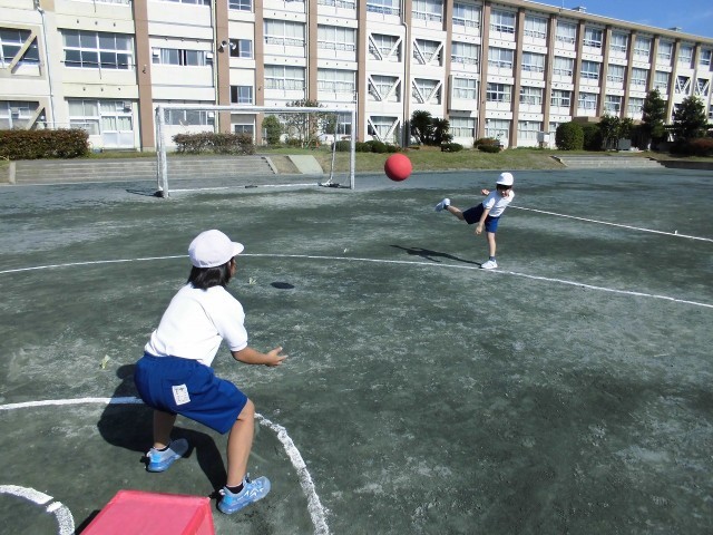 攻撃側は的をねらって、守備側は的に当てさせないように体をはってガードします。