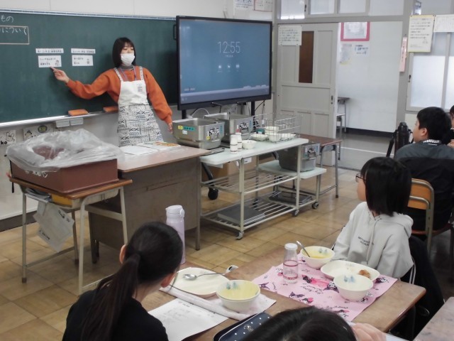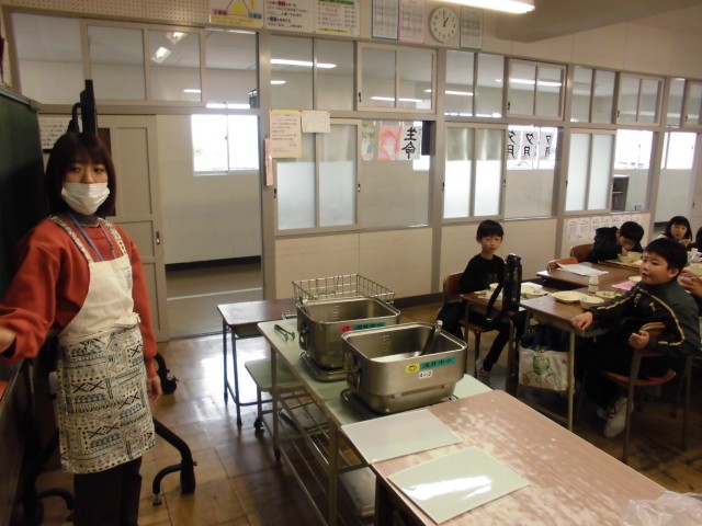 今日の給食時に、栄養教諭から食育指導がありました。給食メニューの「かぼちゃの豆乳シチュー」に使われている食材を例にし、野菜には緑黄色野菜と淡色野菜とに分けられることを学びました。子どもたちはみんな興味深く話を聞き、いろいろな野菜を分類するクイズに楽しく答えていました。