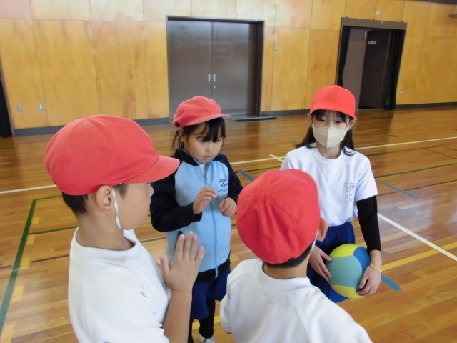 試合前に今日の作戦を話し合います。