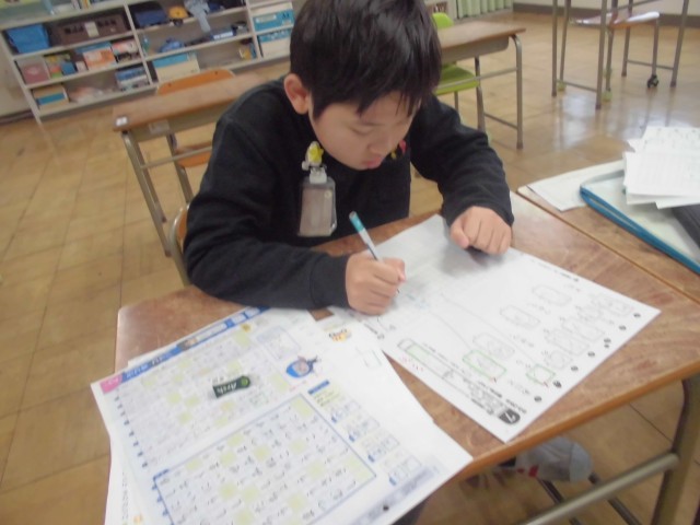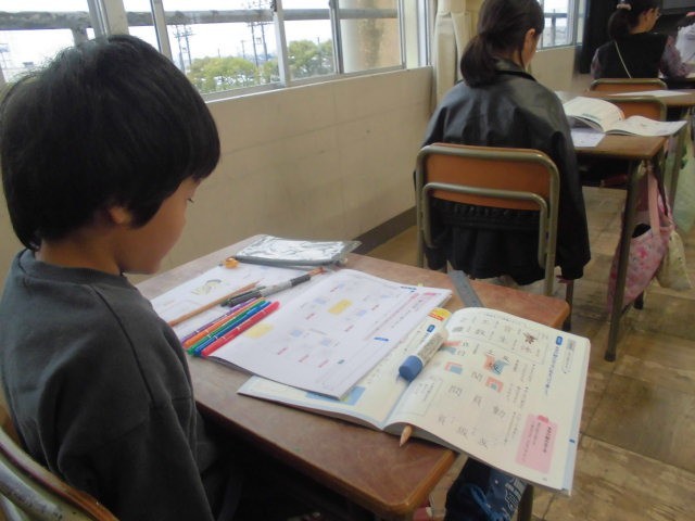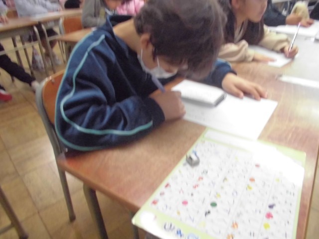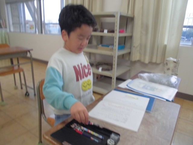 4年生は連絡帳を書いたところです。明日の確認をしています。