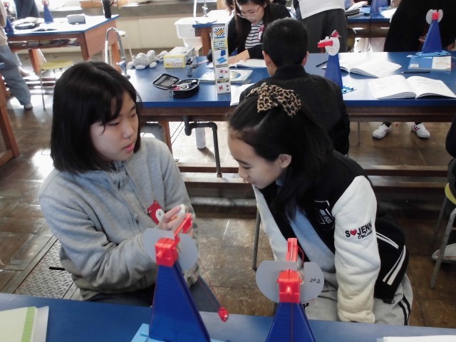 ふりこの長さをかえて、ふりこが1往復する時間がどうなるか調べています。