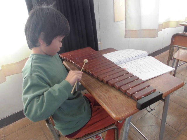 3年生は音楽。好きな楽器で合奏の練習が始まりました。