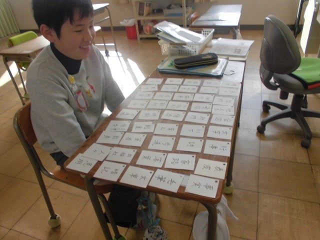 5年生は国語。45個の熟語をスラスラ読んでいます。