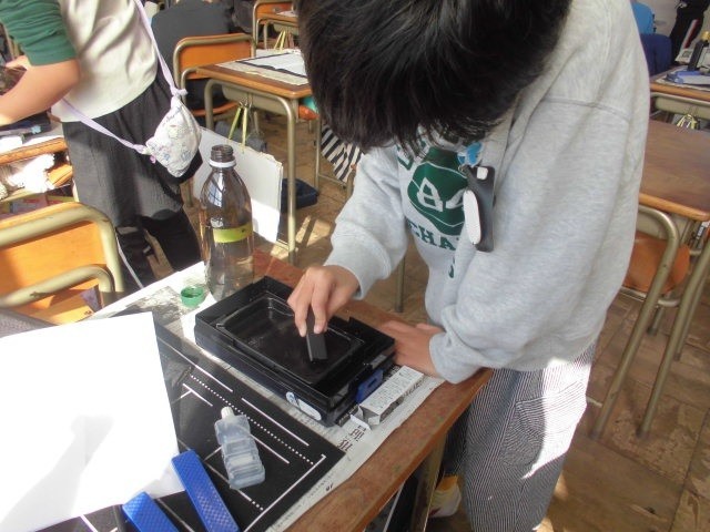 3年生は書写。今日は墨をすって書くようです。