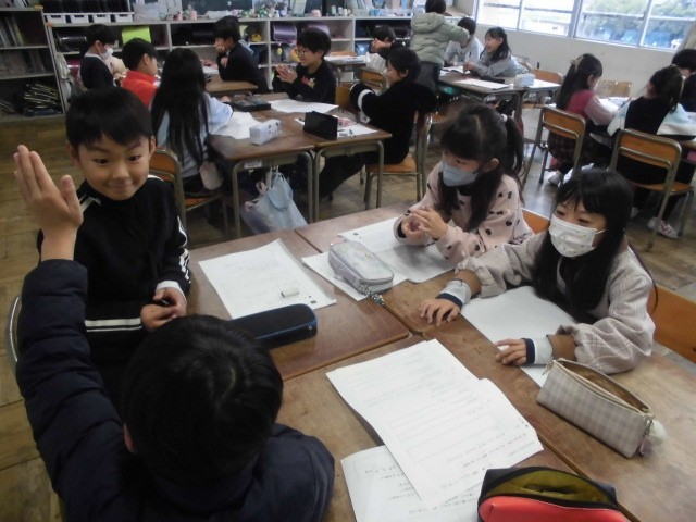 そうだんにのってください【12月3日(水)2年生】 公開日 2025/12/04 更新日 2025/12/03 2年 話し合いの進め方に気をつけながら、グループで話し合いをしました。友達の考えを聞いて、「それはいい考えですね!」と反応している姿がありました。