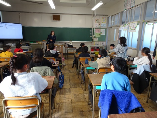 3年生を対象に、愛知県警の方にキャリア教育授業を行っていただきました。働くこととはどういうことか、警察はどのようなことをしているのか、今、大切にしてほしいことは何かなどのお話を聞かせていただきました。また、映像を見て、犯人の顔の特徴を覚え、モンタージュ写真を作る体験もさせていただきました。子どもたちは、警察の仕事に関する話や体験を通して、自分の憧れの職業について話したり、大人になるために今がんばることを考えたりする時間となりました。