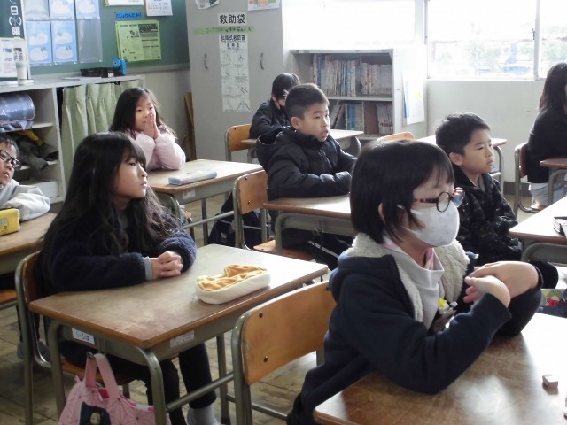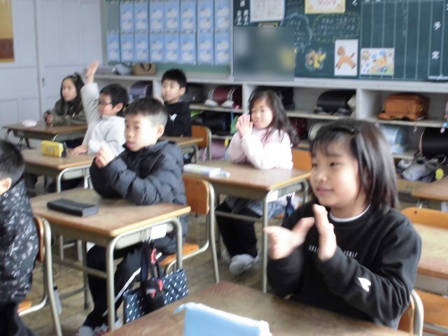 2年生の教室では冬休みにあった楽しかった思い出を発表しています。