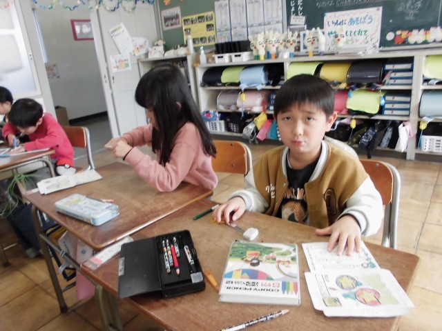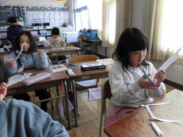 2月にやってくる新1年生に向けておくりものを作っています。