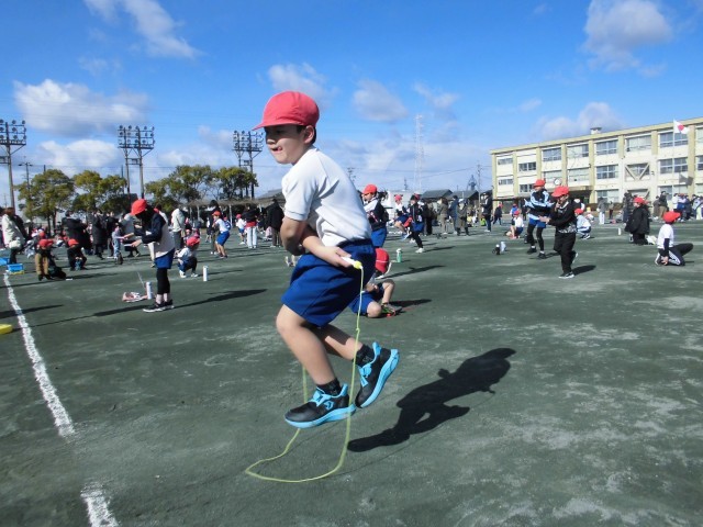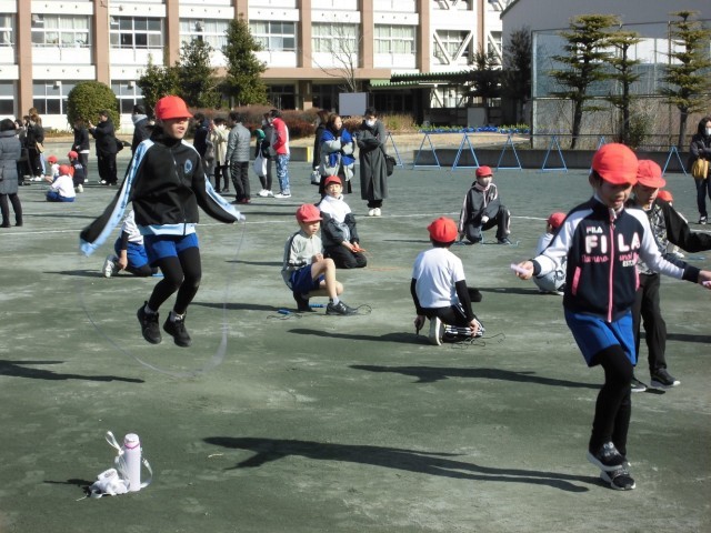 なわとび発表会では、これまで練習してきた技に挑戦しました。当日は風があり、少し難しいコンディションでしたが、一人ひとりが練習の成果を十分に発揮できていたと思います。また、長縄ではクラスで団結し、目標に向かって一生懸命取り組むことができました。今日まで努力を積み重ねてきた子どもたち、本当によく頑張りました。