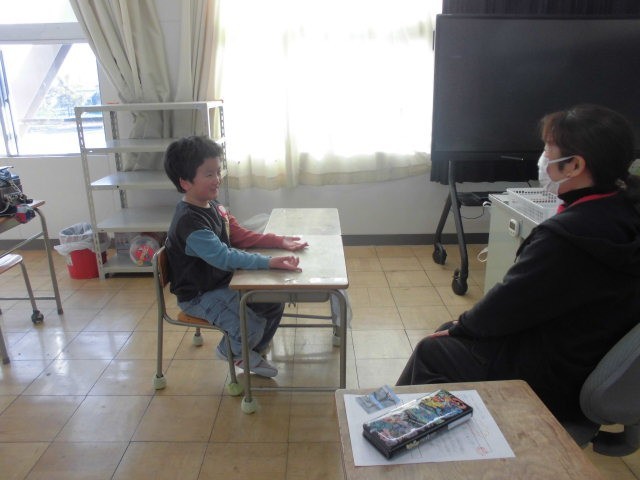4年生は担任の先生とお話の途中でした。「授業が楽しい!」と聞こえてきましたよ。